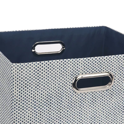 - Made of blue and white cross weaved straw for a designer look