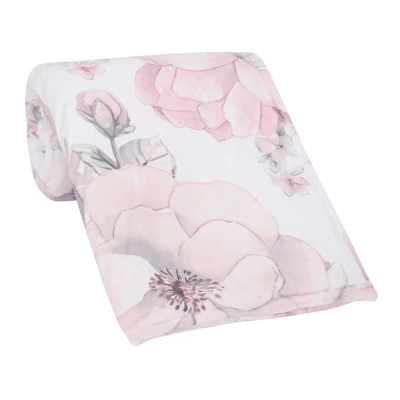 This lovely minky front faux shearling back fleece baby blanket will wrap your little one in total luxury. Pretty pink and gray watercolor flowers decorate the front, and the back is a soft to the touch white faux shearling. Sized at 30” X 40” it is the perfect stroller blanket. It is ideal for trips to the park, running errands, and is great for moms and little ones on the go. It is machine washable for easy care.