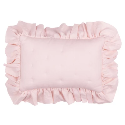 - Lovely pink pin tucked linen blend pillow with large ruffle