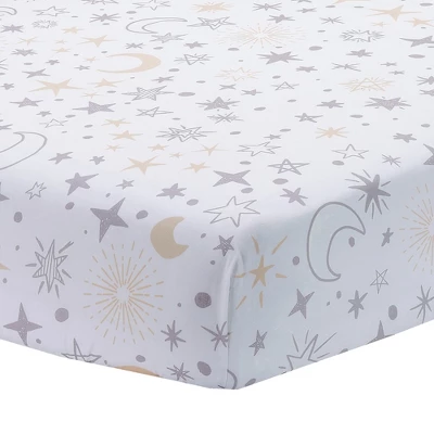 - Tossed moon and star breathable 100% cotton fitted crib sheet