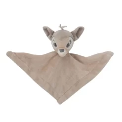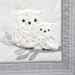 Two light gray embroidered velour clouds and two creamy white embroidered velour clouds rotate around a wooden ring on this unique musical mobile. There are felt gold stars in between the ring and each cloud. A creamy white velour crescent shaped moon is in the center and a small gray moon, copper star, and the words “Love you to the moon” are on the music box sticker. The scrunchie, which covers the mobile arm, is cream colored velour. This musical mobile plays nursery songs for 20 minutes, has an on/off switch, and volume control. Requires 3 AAA batteries not included.