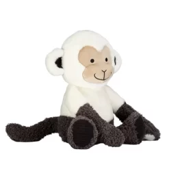 Meet Charlie. He is an oh so soft, cute, and cuddly monkey. His total body length is 14”. His upper body is a high pile creamy white minky and his lower body is a charcoal gray textured boucle. Charlie’s face is a light taupe velour and his facial features are embroidered, making him 100% baby safe. His hands have self-fasteners allowing you to place him in many different poses. He makes a great baby shower gift or welcome home baby gift.