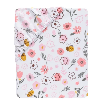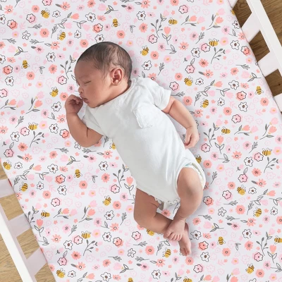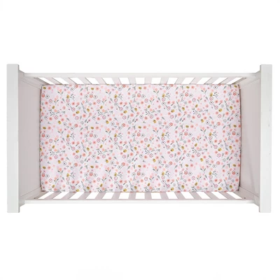 - Soft and breathable 100% cotton pink floral fitted crib/toddler sheet