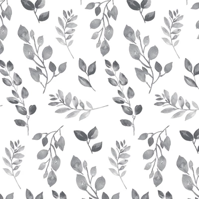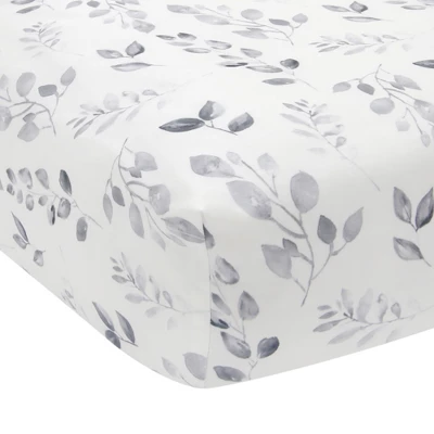 - A lovely watercolor leaf design in shades of gray decorates the 100% cotton fitted crib sheet