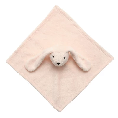 What could be better to comfort your little one than this adorable soft and cozy fleece security blanket / lovey? The pink bunny’s long inner ears are made in a soft textured white ribbed velour, and her face is expertly embroidered in black making her baby safe. The blanket portion is 12” X 12” and is made in a ultra soft luxury fleece. Security blankets (loveys) are cuddly companions that help baby learn to self soothe.