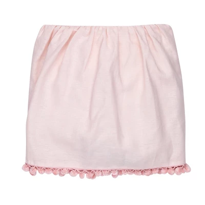 - Stunning shirred 16-inch-long crib skirt with pom-pom trim create a designer look