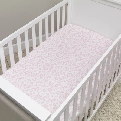 This trendy pink and white skin print is 100% Certified Organic breathable cotton fitted crib sheet is pure and safe for baby. Its fully elastic perimeter provides secure fit. The leopard print is in crystal pink on a crisp white ground. It is a perfect blend of style and comfort. Machine washable for easy care.