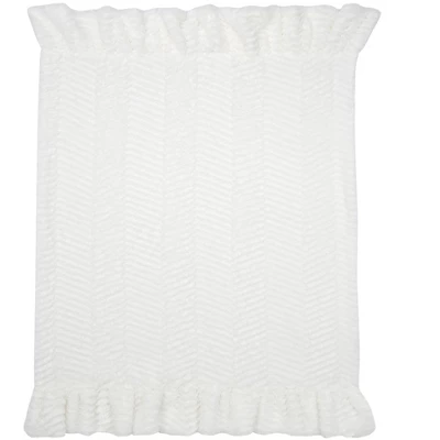 This custom high pile minky blanket has been cut into a lovely chevron white on white pattern. There is a stunning 4 ½” ruffle at the top and bottom of the blanket. The back is a 100% cotton white jersey. This luxurious blanket is 30” X 40” and the ultra-soft material will provide your little one with cozy comfort.