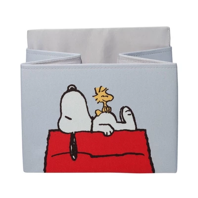 Snoopy to the Rescue! Conquer nursery chaos with this adorable foldable Snoopy storage. Sized at 12 ½” X 11” X 9” this space saving storage basket folds flat when not in use. The front and back features Snoopy lounging on his red doghouse with Woodstock perched comfortably on his tummy. Made of high-quality polyester canvas with two sturdy carrying handles making it easy to transport from room to room.