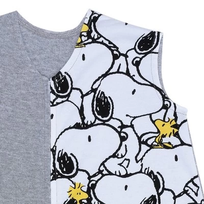 - One side features multiple Snoopys in a trendy sketch style and the other side and back is a pretty heather gray cotton jersey