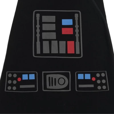 What could be cuter than seeing your baby dressed up as Darth Vader in this officially licensed wearable blanket? This gift set includes one 100% cotton jersey wearable blanket and one lovey/security blanket. The wearable blanket has a front printed panel with graphics depicting the tech components on Darth Vader’s chest and tummy. There are square and rectangle shaped gray boxes with blue, red, and gray buttons. The side zipper has a unique construction. It was designed not to interfere with the look and provides easy access to baby for diaper changes. Recommended for safe sleep, this medium size fits babies 6 – 12 months or 16 – 24 pounds. The lovey/security blanket is 14” X 14”. It is made in a luxurious fuzzy coral fleece fabric. The lovey Darth Vader head is approximately 4” in width and has an embroidered face complete with soft helmet. The message “I make the Rules” is embroidered in red threads.
